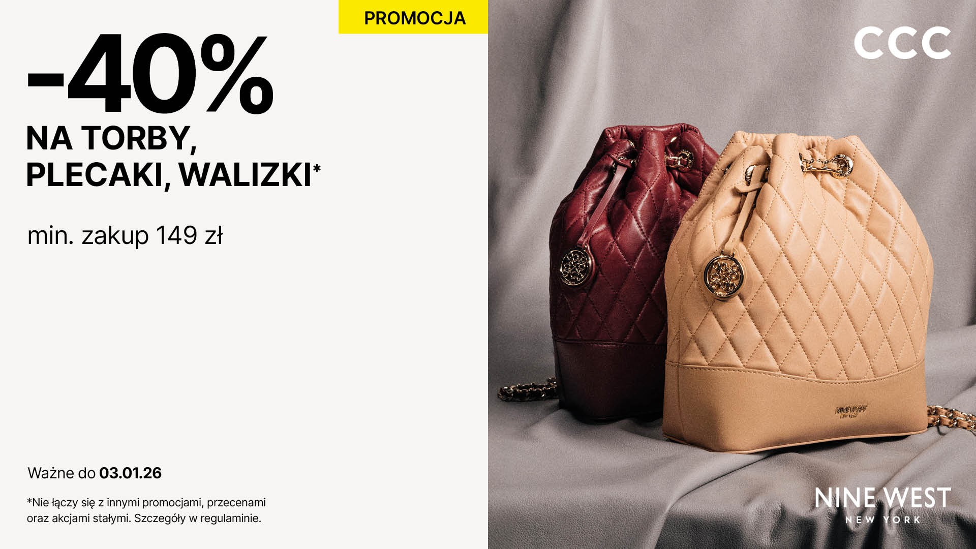Stylowa torebka, wygodny plecak, praktyczna walizka – teraz kupisz 40% taniej w CCC! Zrób zakupy za minimum 149 zł i zyskaj rabat na modele znanych marek. Super ceny i najlepsze okazje – tylko w CCC!