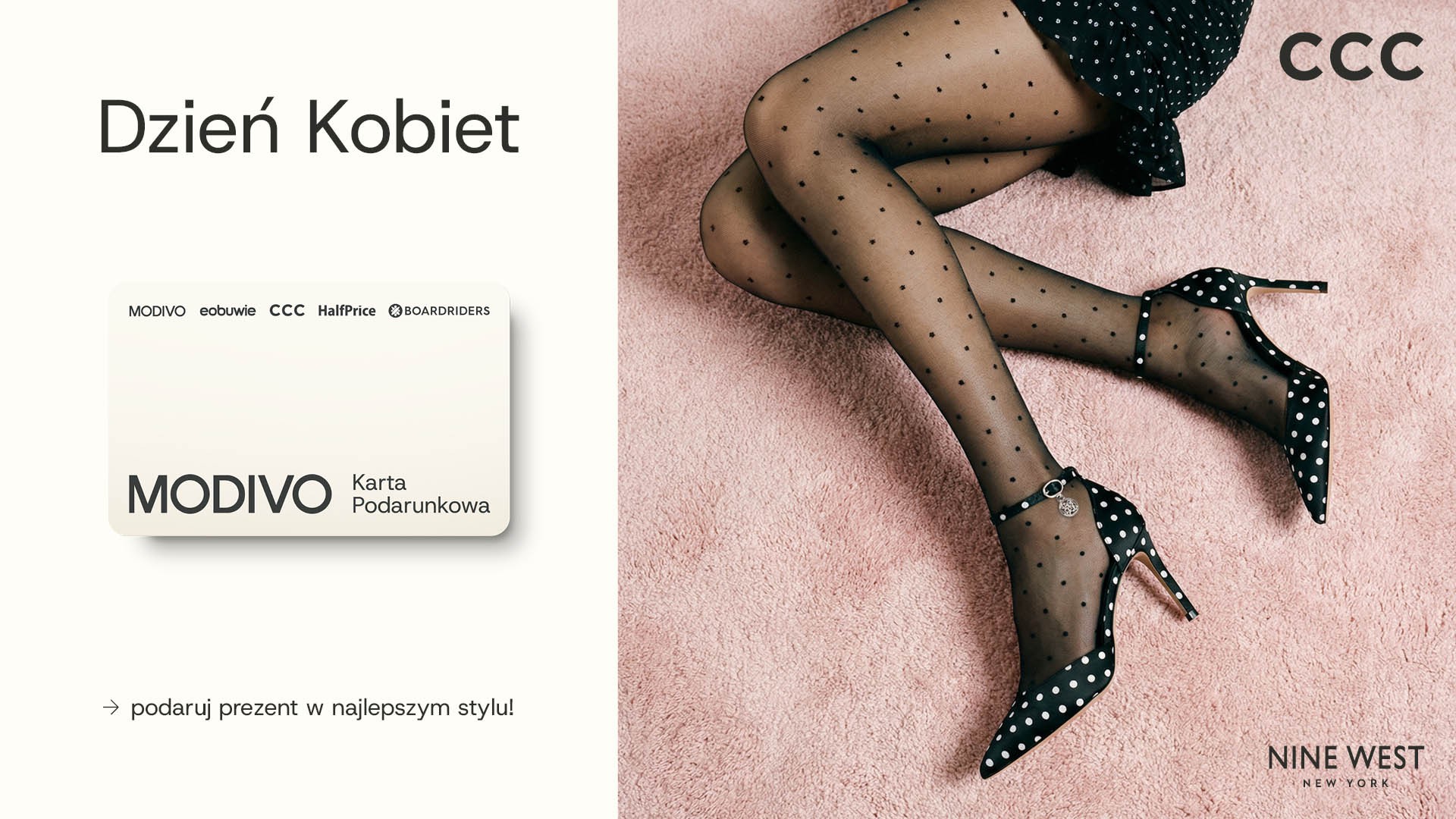Umówmy się – wybór idealnego prezentu to nie lada wyzwanie! Trafienie w 'ten konkretny' odcień błękitu czy wymarzony fason butów bywa trudne. Dlatego mamy dla Ciebie rozwiązanie idealne na Dzień Kobiet: Kartę Podarunkową MODIVO! Ona wybiera swój wymarzony model, a Ty zbierasz laury za najlepszy prezent pod słońcem. Kartę Podarunkową MODIVO znajdziesz przy kasie. Wyjątkowy prezent dla wyjątkowej kobiety!