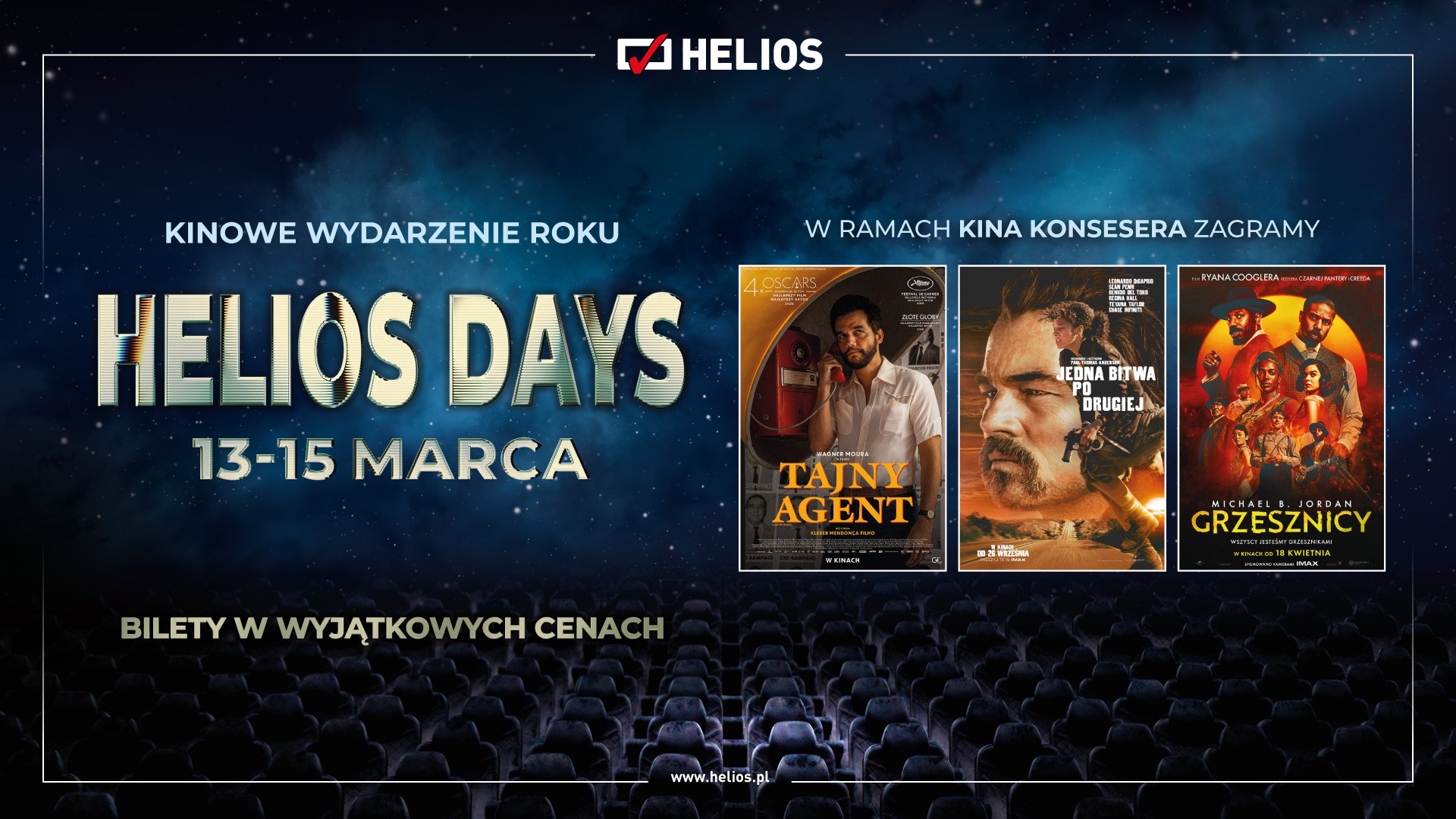 Kino Helios Krosno serdecznie zaprasza w dniach 13–15 marca w ramach akcji Helios Days na seanse z cyklu Kino Konesera w wyjątkowych cenach!
