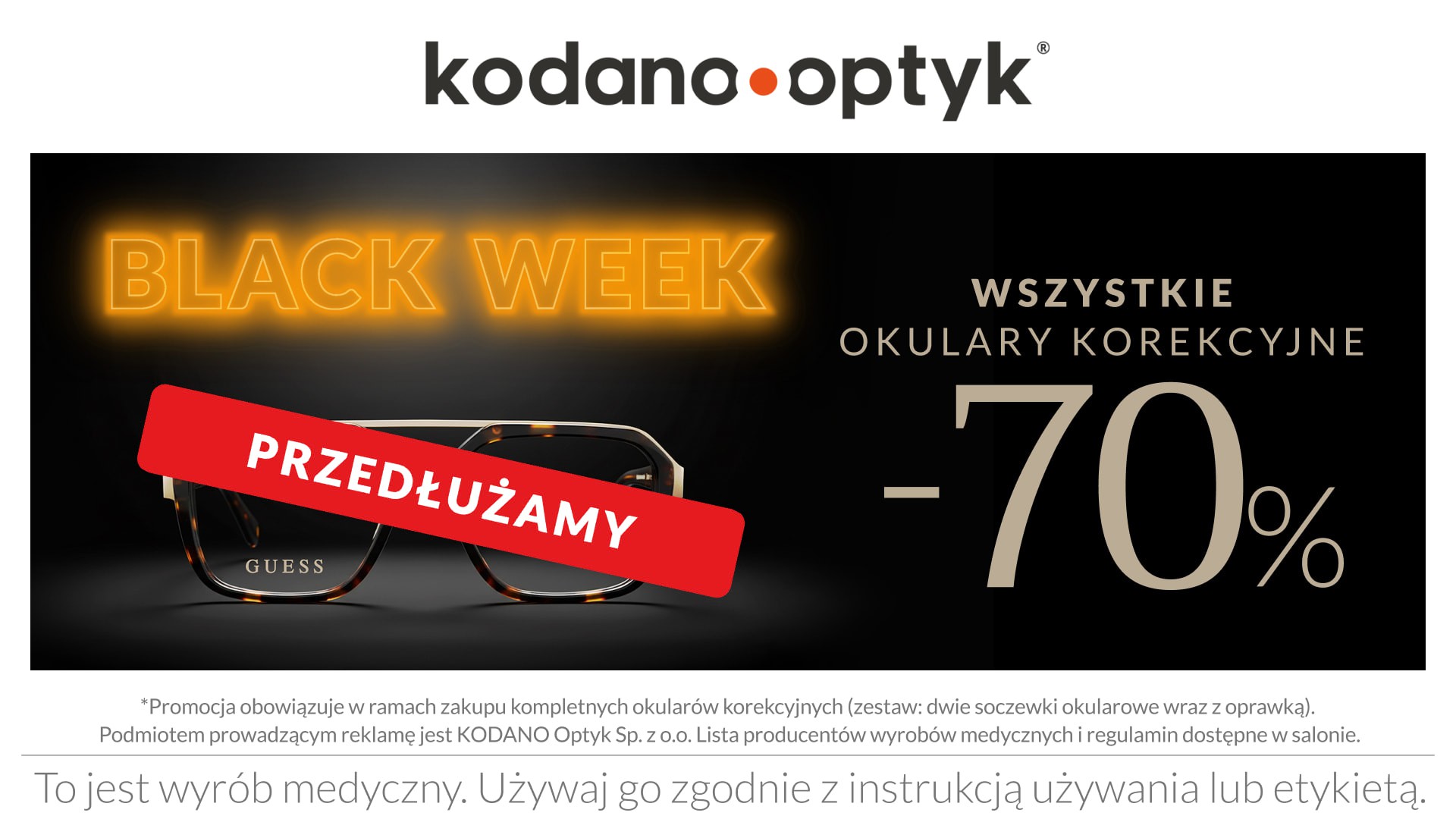 KODANO OPTYK: PRZEDŁUŻAMY BLACK WEEK – WSZYSTKIE OKULARY KOREKCYJNE 70% TANIEJ!