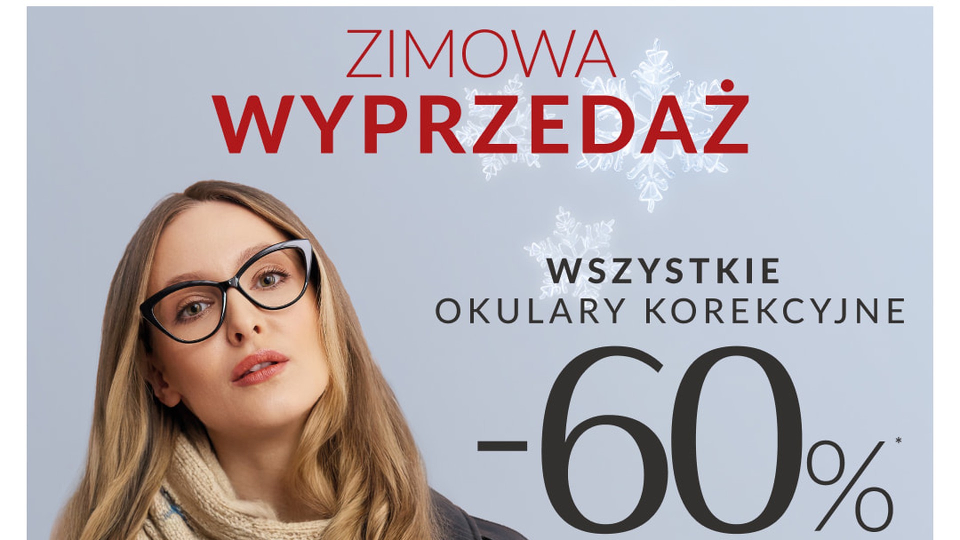 Zimowa wyprzedaż w KODANO Optyk! WSZYSTKIE okulary korekcyjne 60% taniej. Promocja obowiązuje przy zakupie kompletnych okularów korekcyjnych (oprawa + dwie soczewki). Oferta ważna do 31.01.2026 r., szczegóły dostępne w salonie