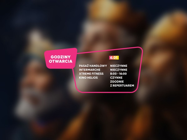 Bez względu na to, czy szukasz najnowszych trendów w modzie, czy chcesz się dobrze bawić - w naszym Centrum Handlowym jest wszystko, czego dusza zapragnie. Tutaj znajdziesz blisko 80 salonów najmodniejszych marek, w drogeriach poznasz magiczny świat piękna, a w kawiarniach i cukierniach odkryjesz nowe kulinarne horyzonty. Regularnie organizujemy wydarzenia oraz wspieramy lokalne marki. Zapewniamy najwyższy standard usług, aby Twój pobyt w naszym centrum przebiegł w miłej atmosferze. A kino Helios zapewnia najbardziej aktualne wrażenia kinowe.