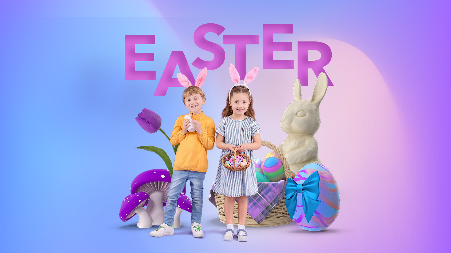 Copiii sunt invitați la o întâlnire cu Iepurașul de Paște, unde vor primi ouă de ciocolată și se vor transforma în adevărați iepurași, cu urechi drăgălașe.